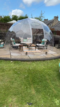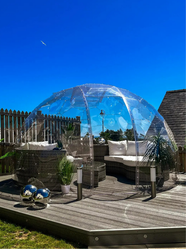 Turned our garden into a proper outdoor lounge with comfy seating inside the dome. Sheltered from the wind and rain, we use it almost every evening. Perfect for unwinding with a glass of wine after work.